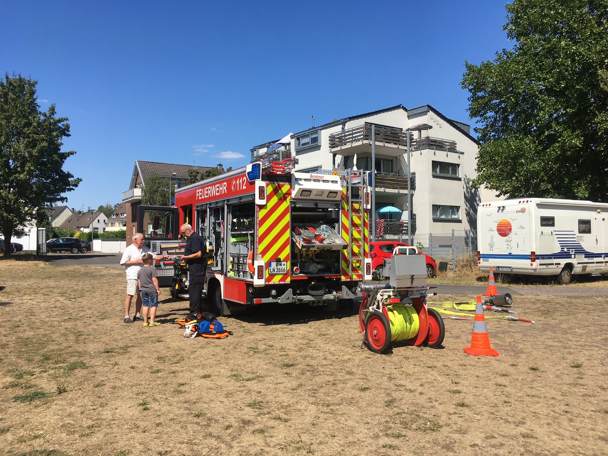 Die Merkenicher freiwillige Feuerweher kam mit einem großen Fahrzeug vorbei und gab Interessierten ausführliche Erklärungen.